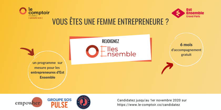Le Comptoir - Groupe SOS Pulse lance un appel à projets pour la deuxième édition d'Elles Ensemble dédié aux femmes entrepreneures.