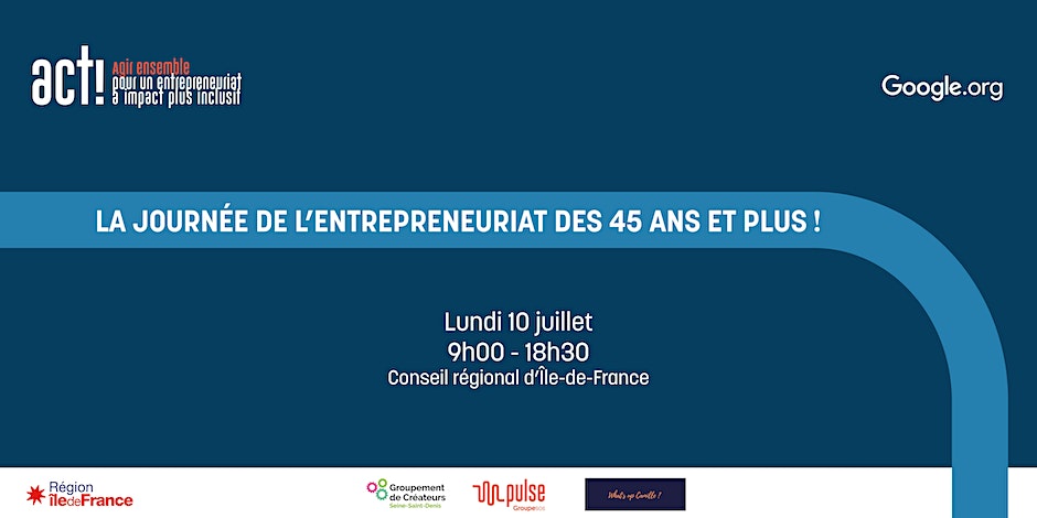C’est avec un immense plaisir que PULSE, What's up Camille, Le Groupement de Créateurs 93 et Valérie Pécresse, Présidente de la Région Ile-de-France, vous invitent à l'événement Entreprendre à 45 ans et plus, au Conseil Régional de Saint-Ouen le lundi 10 juillet 2023.