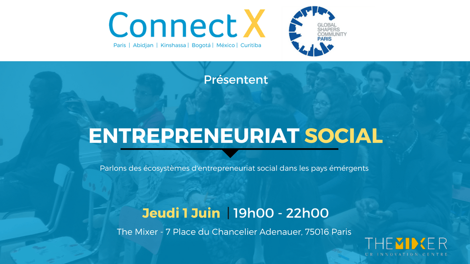 Cet évènement co-organisé entre Global Shapers-Paris et ConnectX avec le but de permettre aux entrepreneurs sociaux, aux experts du développement international, aux grands groupes internationaux et, en général, à tous les acteurs de la ESS (Economie Social et Solidaire) de discuter comment encourager l’entrepreneuriat social pour promouvoir la croissance et le développement durable dans les pays émergents.