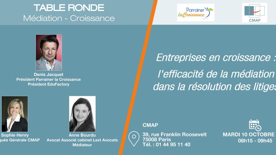 L'anticipation et la résolution de conflits par des processus peu couteux, rapides et confidentiels, deviennent un enjeu de développement majeur pour les entreprises à la recherche de solutions efficientes. La médiation particulièrement privilégiée répond à ce besoin d'efficacité. Cette table ronde sera l'occasion de préciser les contours de cette activité, ses bénéfices et les étapes de la procédure.