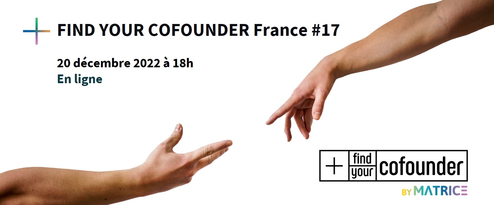 Mardi 20 décembre, de 18h00 à 21h00. Détails et inscription sur : https://www.eventbrite.fr/e/billets-find-your-cofounder-france-17-473326601607