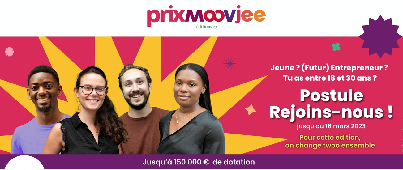Tu es un jeune entrepreneur ? Tu as entre 18 et 30 ans ? Postule à la 14ème édition du Prix Moovjee, concours ouvert jusqu'au 16 mars ! 📅