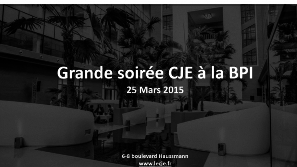 Le Cercle des Jeunes Entreprises organise en partenariat avec la BPI, Hiscox France, Dojogroup, Emosapiens et Té – Traiteur éthique une grande soirée le 25 mars 2015.