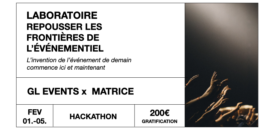 Pour répondre à ce défi de taille, Matrice lance une campagne de recrutement d’individus intéressés par les thématiques de l’événementiel, du numérique et de l’innovation, quel que soit leur domaine d’expertise (développement web, événementiel, design, culture, communication, droit, sciences humaines et sciences de gestion…). L’idée est d’avoir une multitude de profils différents afin de pouvoir traiter des problématiques complexes.