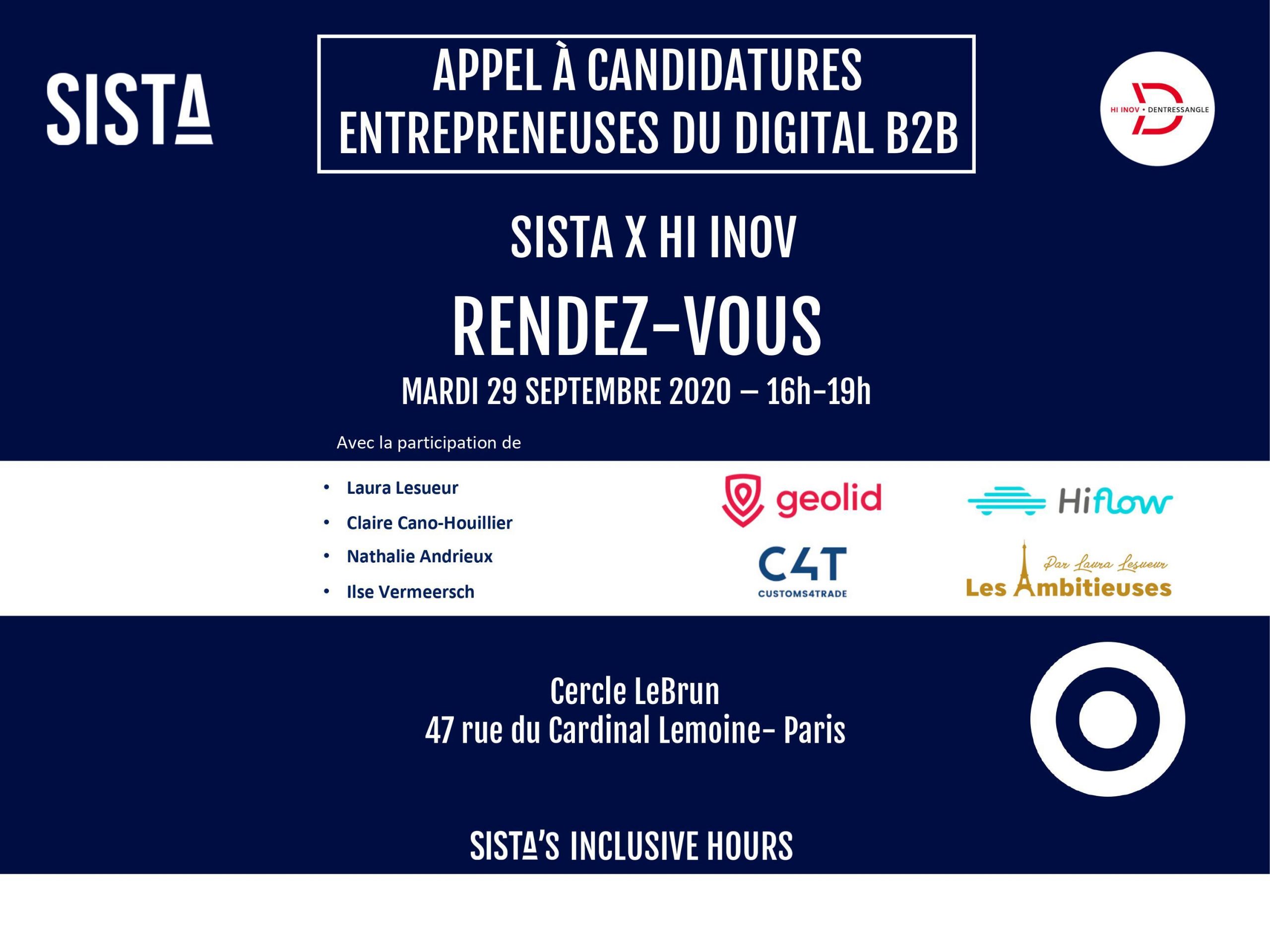 Hi inov - Dentressangle organise les Inclusive Office Hours SISTA animées par Laura Lesueur, éditrice du podcast "Les ambitieuses", le 29 septembre 2020 de 16h à 19h