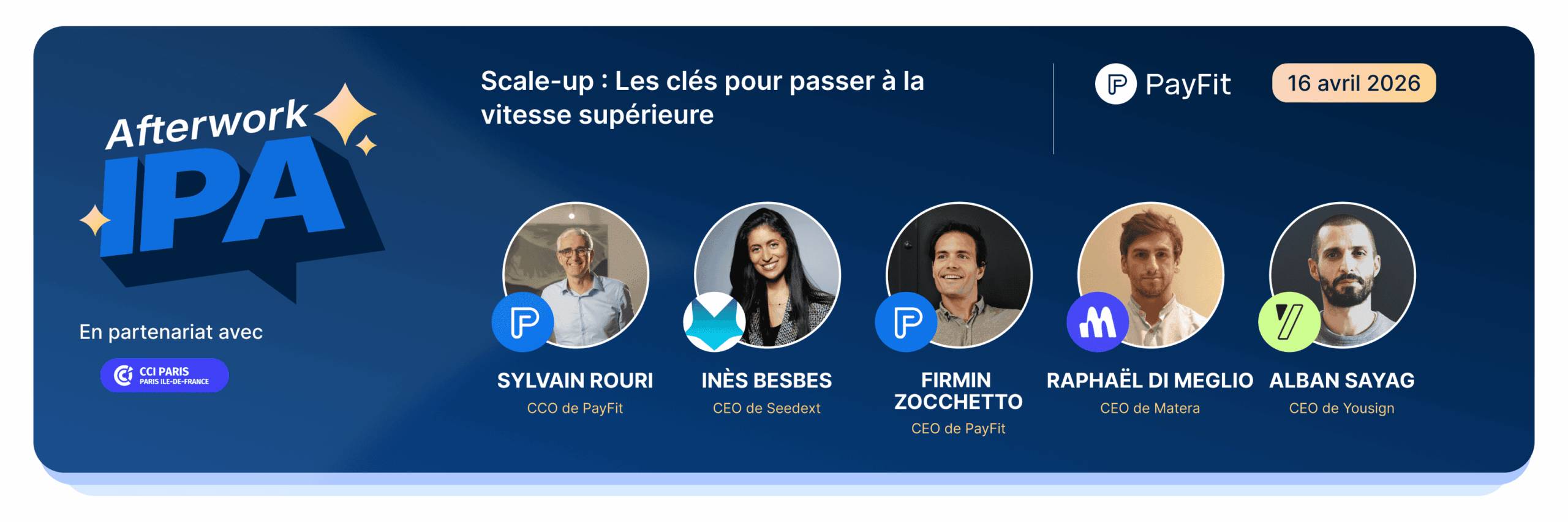 Pour cette nouvelle édition de l'Afterwork IPA (Inspiration, Partage, Apéro), nous réunissons plusieurs profils inspirants pour partager leurs expériences, leurs conseils et leurs bonnes pratiques autour d'un sujet clé : comment faire passer sa startup à la vitesse supérieure.