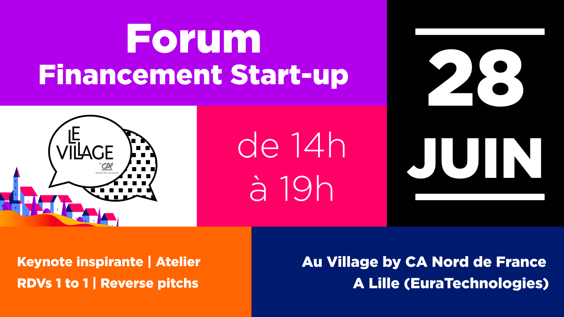 Le 28 juin prochain, le Village by CA Nord de France aura le grand plaisir d’ouvrir le 1er Forum du Financement Start-up en Nord et Pas-de-Calais en compagnie de 2 des plus belles start-up françaises.