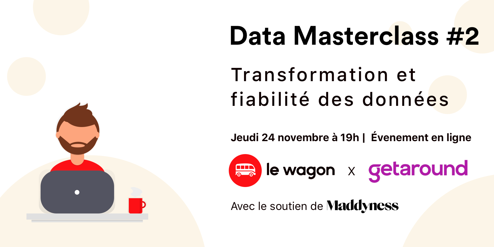 Cette masterclass portera sur la transformation et la fiabilité des données utilisées par les équipes data d'une entreprise tech ! Nous creuserons ce sujet avec un Ingénieur Analytique de @Getaround Europe (ex Drivy) !