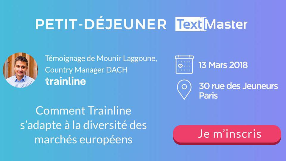 Mounir Laggoune reviendra avec TextMaster sur les dessous du déploiement international de Trainline, qui a su s’adapter à la diversité des marchés européens afin d’offrir une expérience personnalisée à ses utilisateurs.