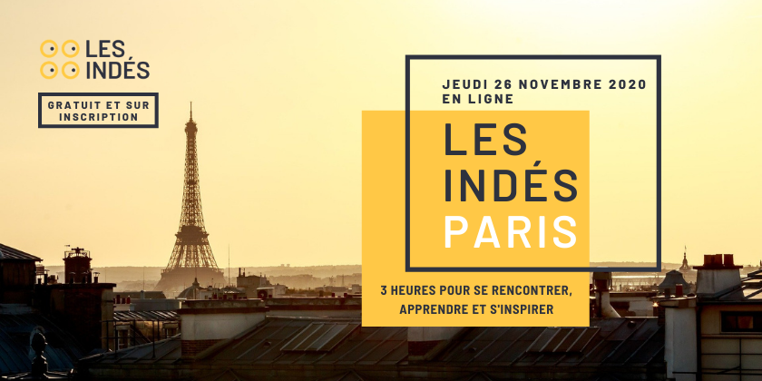 Les Indés est une série de conférences en ligne et locales dédiées aux indépendants et aux freelances qui aborde les enjeux et les défis d’une communauté qui s’affirme, prend conscience d’elle-même et fait aujourd’hui des choix qui la distinguent des autres. Sur 6 mois, les Indés se tient dans 10 villes françaises dont Paris, Lyon, Lille, Nice et Nantes. Paris, justement, où l’édition 2020 est programmée pour le 26 novembre.