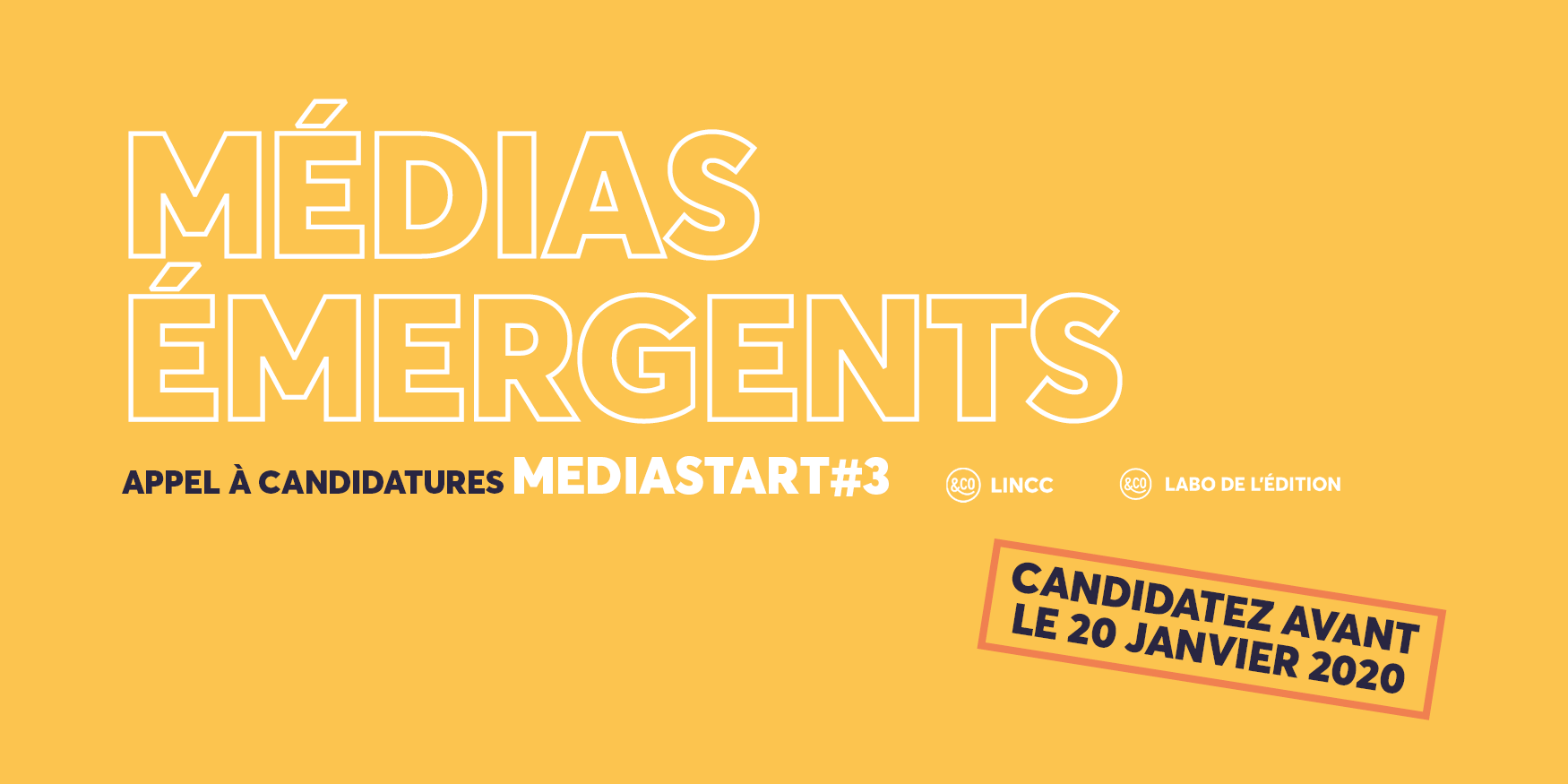 Ouvert jusqu'au 20 janvier 2020 à midi, l'appel s'adresse aux porteurs de projets ou entrepreneur(e)s, seuls ou en équipe, du monde de l’édition et des médias : journalistes, créateurs et créatrices de contenus, développeurs et développeuses portant une innovation technologique à valeur ajoutée pour le monde des médias, producteurs ou productrices de contenus audio ou vidéo pour le web ou les diffuseurs traditionnels, édition…