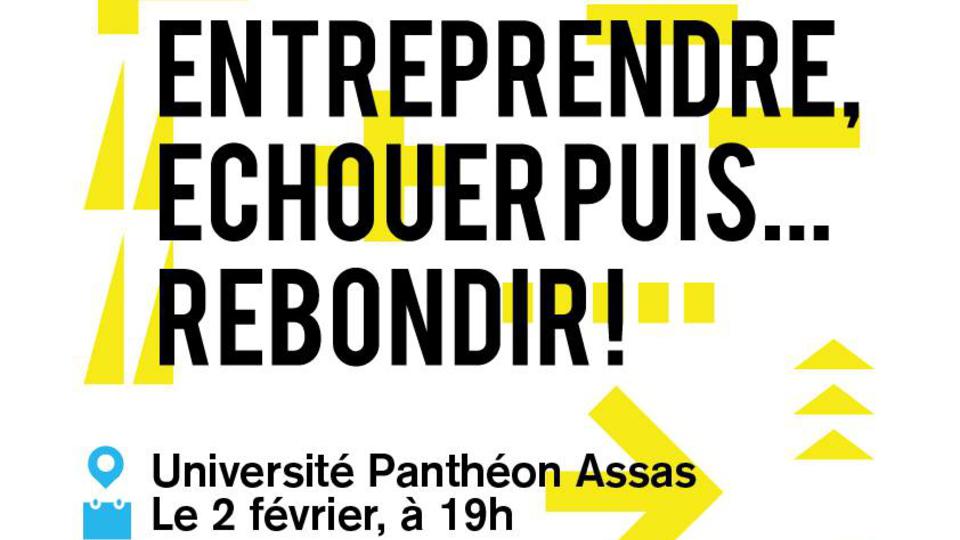 Le 2 février à l'Université Panthéon Assas à partir de 19h, parlons sans honte ni tabou de l'échec de l'entrepreneur et célébrons la prise de risque lors de la 16e édition du Mash Up. Nos intervenants partageront avec vous leurs expériences et leur vision de l'échec et du rebond entrepreneurial :