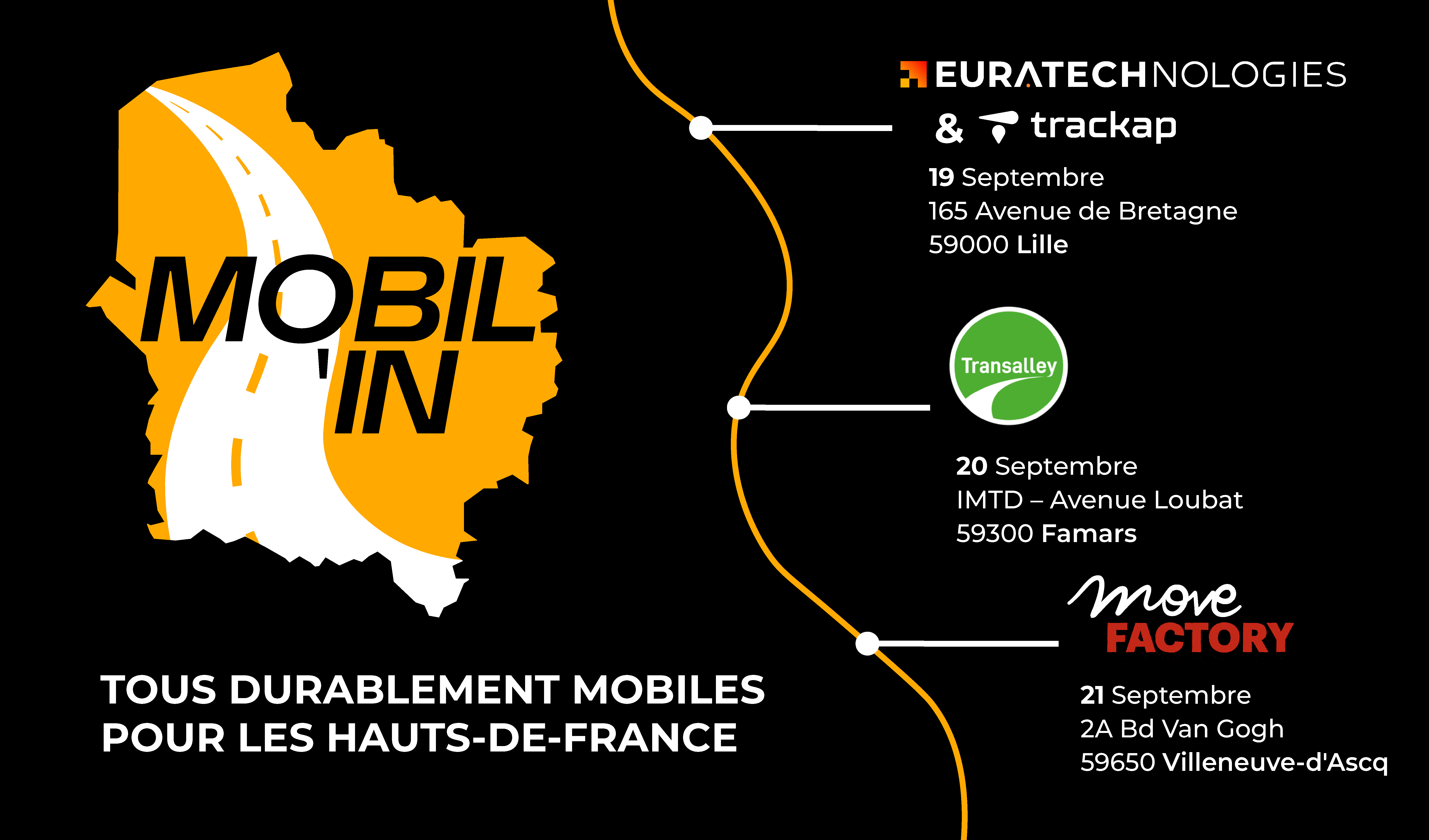 Pour la première fois, 4 acteurs de l’innovation des Hauts-de-France – EuraTechnologies, Trackap, Move Factory et Transalley – s’unissent pour vous offrir un événement inédit :