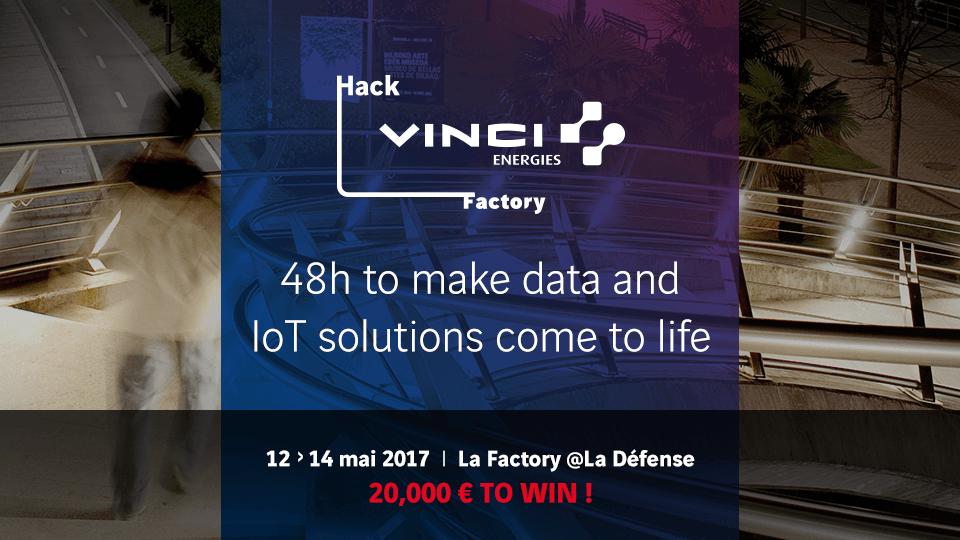 Un objectif : développer des services encore plus performants grâce à l’IoT et au Big Data. Plongez-vous dans la data et l’expérience IoT de VINCI Energies au sein de la Factory, son nouveau lieu dédié à l'innovation. Données, objets connectés, capteurs seront mis à votre disposition pendant 48h dans un terrain de jeu grandeur nature au cœur de la Défense.