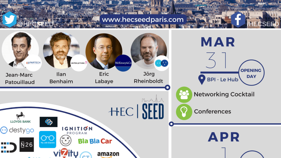 Students, Entrepreneurs, Investors & Influencers shaping technology across Europe : Be part of one of the biggest Entrepreneurship Events in Paris-Saclay ! This years’ edition is the result of merging HEC SEED and Journée Entrepreneuriat Etudiant, and is open to every student and entrepreneurs in Europe and Paris-Saclay !