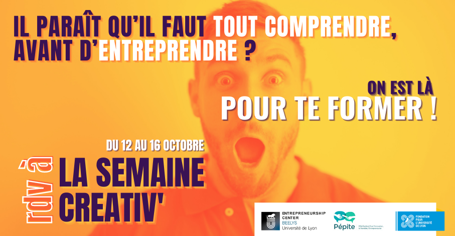 Du 12 au 16 octobre 2020 dans le cadre de la semaine CREATIV’, l'Entrepreneurship Center Lyon Saint-Étienne organise chaque jour des ateliers en ligne sur une thématique du monde de l’entrepreneuriat. La semaine idéale pour initier, échanger, découvrir, tester, réseauter, développer et passer à l’action !