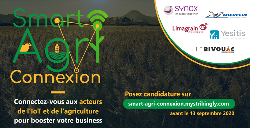 Le Bivouac, en partenariat avec Michelin, Limagrain, Yesitis et Synox lance Smart Agri Connexion, un appel à candidatures pour favoriser le développement de solutions connectées autour des enjeux de l’agriculture durable. Cet appel à candidatures est organisé dans le cadre de la journée CAP IOT Smart Agriculture, dédiée à l’IOT et l’agriculture.