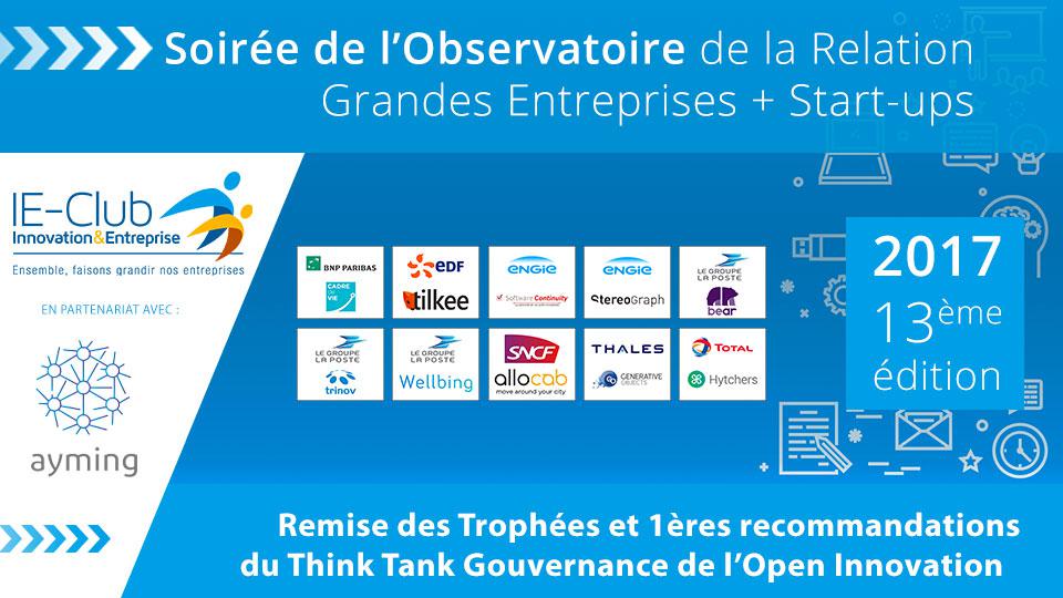 08-11-2017 12:00 08-11-2017 12:00 Europe/ParisSoirée de l’Observatoire de la Relation Grandes Entreprises + StartupsL’IE-Club et Ayming organisent la 13ème soirée de l’Observatoire de la Relation Grandes Entreprises + Startups.