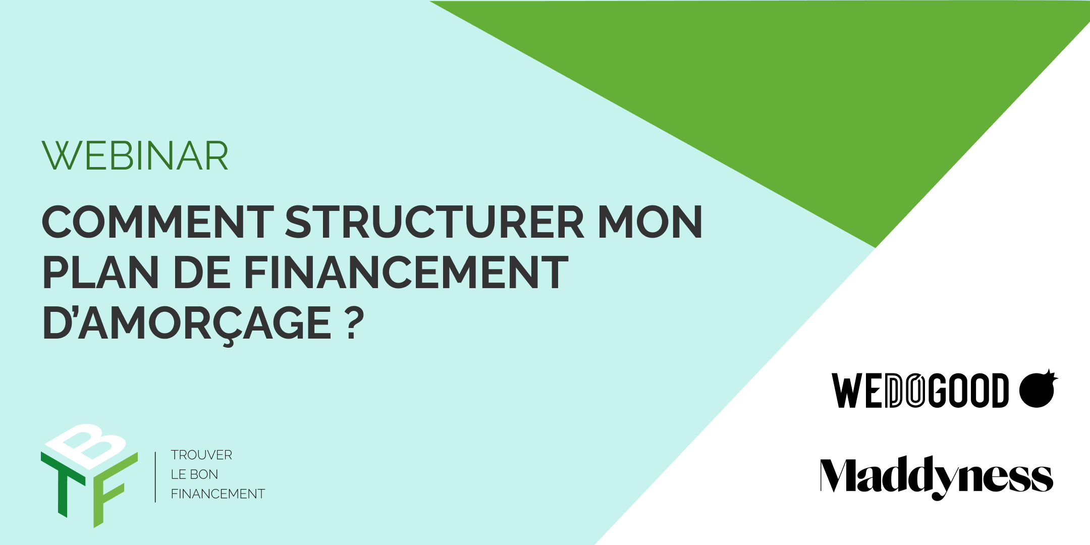 Love money, prêt d'honneur, prêt bancaire, subvention, avance remboursable, prévente, crowdinvesting, crowdlending... comment bien structurer mon plan de financement d'amorçage afin qu'il soit solide et que je bénéficie d'un bon effet de levier ? Comment éviter de céder du capital trop tôt ? Rendez-vous avec WE DO GOOD, fintech certifiée B Corp spécialisée dans les levées de fonds en royalties, qui abordera les différentes solutions adaptées à votre projet.
