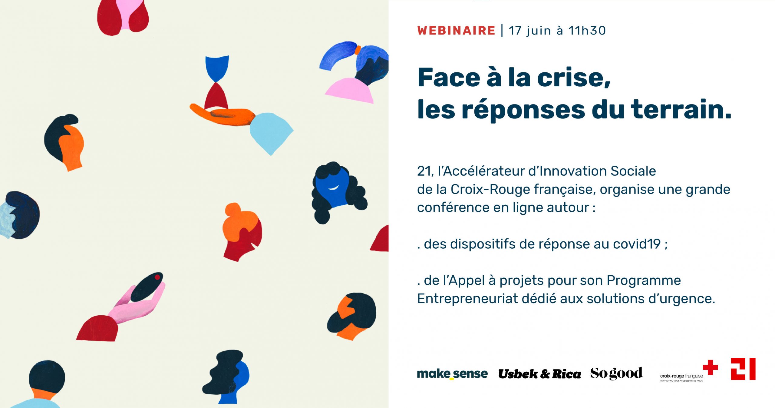 Nous présenterons également l'appel à projets "Unis contre la crise", ouvert à toute association, startup ou collectivité territoriale qui veut créer avec la Croix-Rouge française une collaboration forte en réponse à la crise covid19. En savoir + ici : https://21-croix-rouge.fr/programme-entrepreneuriat/