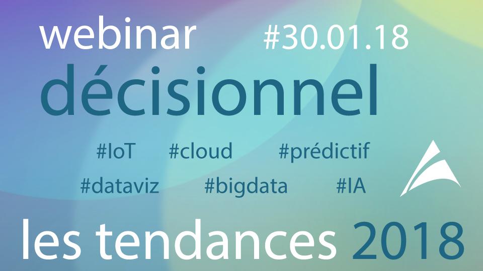 Atol Conseils et Développements organise un webinar mardi 30 janvier 2018 de 10h à 11h sur le thème "Les tendances 2018 de l'informatique décisionnelle".