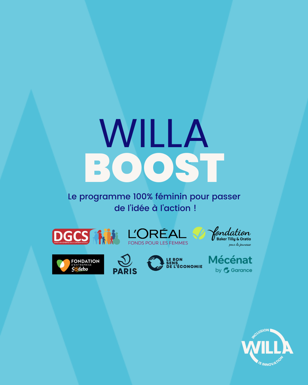 WILLA BOOST c’est un programme de 2 mois pour dépasser ses peurs et construire son projet pas à pas grâce à des exercices pratiques, conçus avec des expertes, et une communauté de femmes inspirantes.